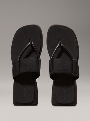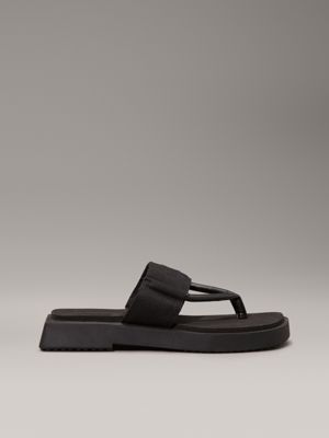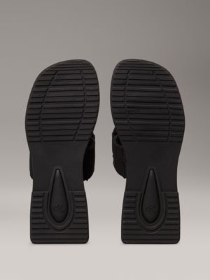 The sandal upper is crafted with 60% recycled cotton, created by reprocessing existing cotton materials.