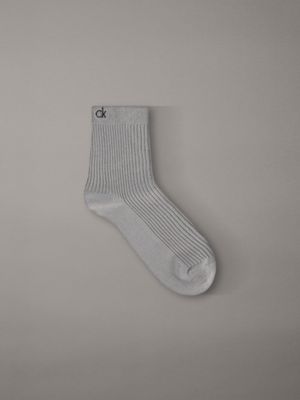 Crafted with subtle metallic Lurex fibres, these ankle socks feature a structured double-cylinder knit for a secure fit that won’t sag. Finished with smooth seams and embroidered CK monogram on the welt.