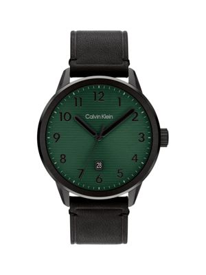 A clean, contemporary take on the pilot watch, featuring a linear textured dial with date indicator and smooth leather strap.